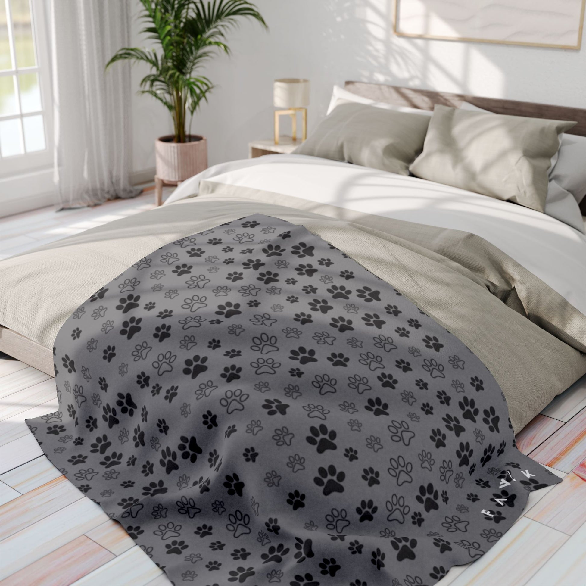 FAVLK Grey Paw Print Arctic Fleece Blanket